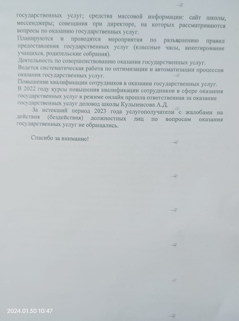 государственных услуг; средства массовой информации: сайт школы, мессенджеры; совещания при директоре, на которых рассматриваются вопросы по - оказанию государственных услуг.